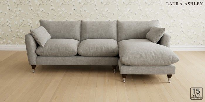 6.12.1 Buy Casterton by Laura Ashley Medium Sofa Chaise - Right Hand Orla Pale Steel Grey Low Chrome Castor - Chestnut from the Next UK online shop Click here to use our accessible website