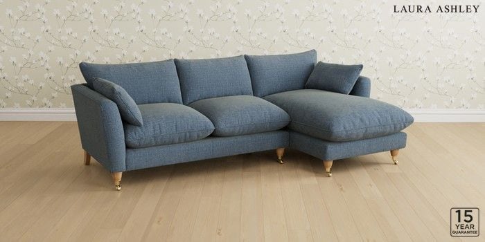 6.12.1 Buy Casterton by Laura Ashley Medium Sofa Chaise - Right Hand Orla Seaspray Blue Low Brass Castor - Light Oak from the Next UK online shop Click here to use our accessible website
