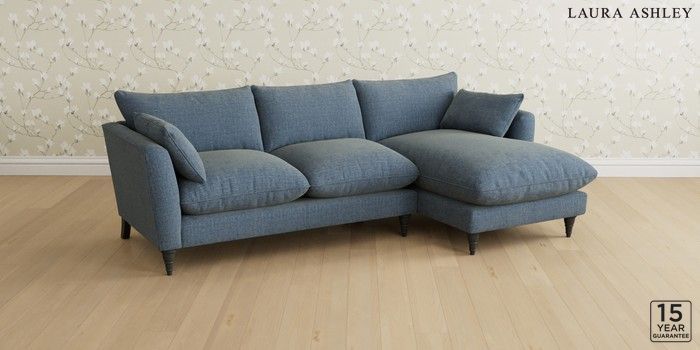 6.12.1 Buy Casterton by Laura Ashley Medium Sofa Chaise - Right Hand Orla Seaspray Blue Low Turned - Black from the Next UK online shop Click here to use our accessible website