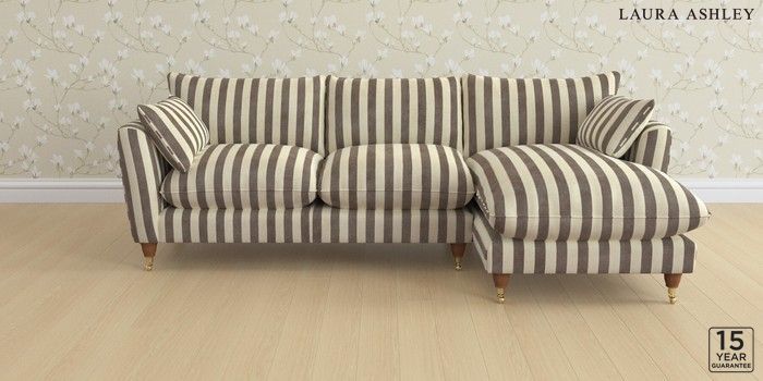 6.12.1 Buy Casterton by Laura Ashley Medium Sofa Chaise - Right Hand Orla Stripe Dark Truffle Natural Low Brass Castor - Teak from the Next UK online shop Click here to use our accessible website