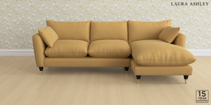 6.12.1 Buy Casterton by Laura Ashley Medium Sofa Chaise - Right Hand Peyton Ochre Yellow Low Brass Castor - Black from the Next UK online shop Click here to use our accessible website