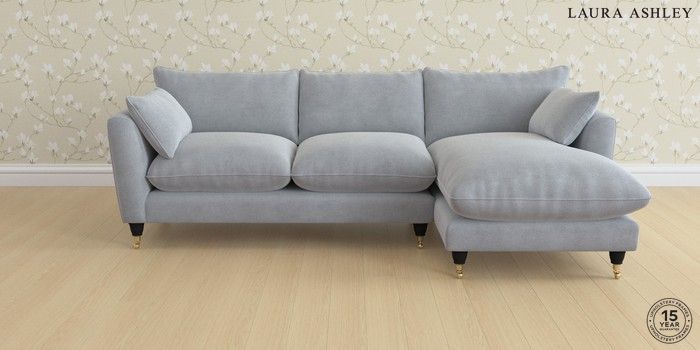 6.12.1 Buy Casterton by Laura Ashley Medium Sofa Chaise - Right Hand Peyton Powder Blue Low Brass Castor - Black from the Next UK online shop Click here to use our accessible website