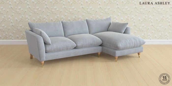 6.12.1 Buy Casterton by Laura Ashley Medium Sofa Chaise - Right Hand Peyton Powder Blue Low Brass Castor - Light Oak from the Next UK online shop Click here to use our accessible website