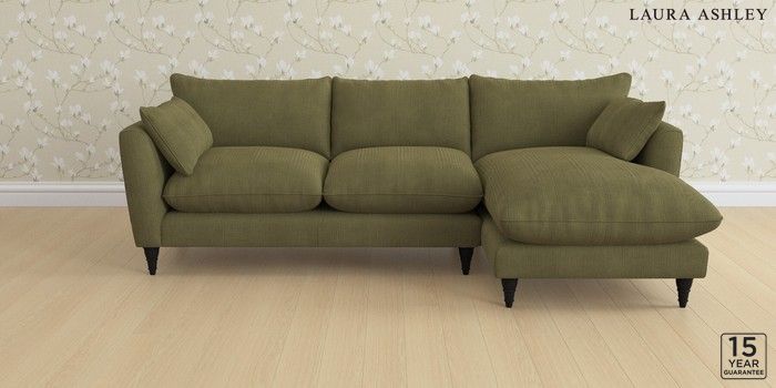 6.12.1 Buy Casterton by Laura Ashley Medium Sofa Chaise - Right Hand Sinclair Cord Ivy Green Low Turned - Black from the Next UK online shop Click here to use our accessible website