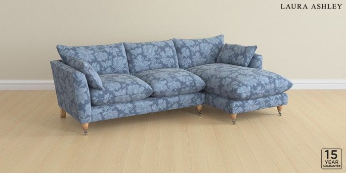 6.12.1 Buy Casterton by Laura Ashley Medium Sofa Chaise - Right Hand Tamara Dusky Seaspray Blue Low Chrome Castor - Light Oak from the Next UK online shop Click here to use our accessible website