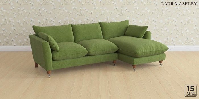 6.12.1 Buy Casterton by Laura Ashley Medium Sofa Chaise - Right Hand Tichwell Olive Green Low Chrome Castor - Teak from the Next UK online shop Click here to use our accessible website