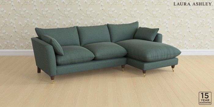 6.12.1 Buy Casterton by Laura Ashley Medium Sofa Chaise - Right Hand Wooton Forest Green Low Brass Castor - Chestnut from the Next UK online shop Click here to use our accessible website