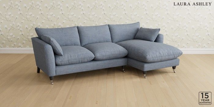 6.12.1 Buy Casterton by Laura Ashley Medium Sofa Chaise - Right Hand Harley Seaspray Blue Low Chrome Castor - Black from the Next UK online shop Click here to use our accessible website