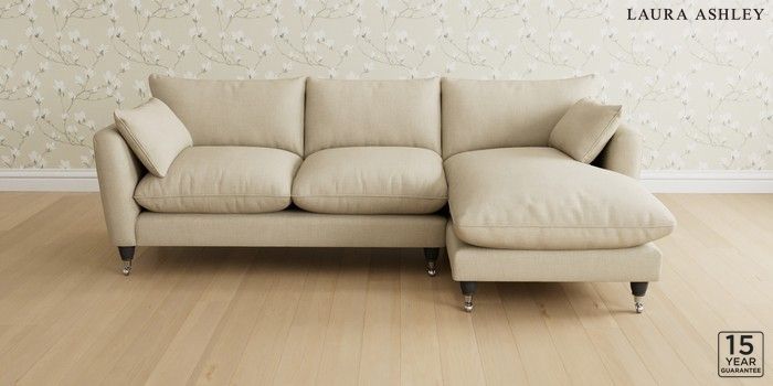 6.12.1 Buy Casterton by Laura Ashley Medium Sofa Chaise - Right Hand Wooton Natural Low Chrome Castor - Black from the Next UK online shop Click here to use our accessible website