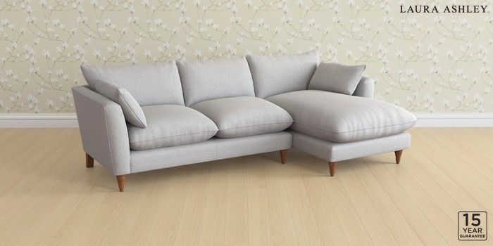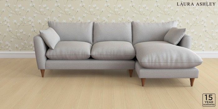 6.12.1 Buy Casterton by Laura Ashley Medium Sofa Chaise - Right Hand Wooton Pale Steel Grey Low Turned - Teak from the Next UK online shop Click here to use our accessible website