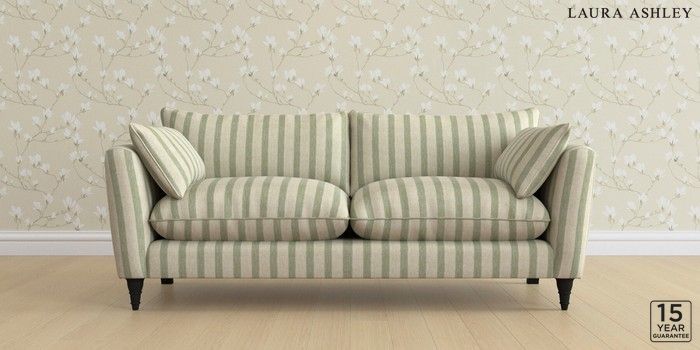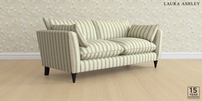 6.12.1 Buy Casterton by Laura Ashley 3 Seater Sofa Kinsham Stripe Hedgerow Green Low Turned - Black from the Next UK online shop Click here to use our accessible website