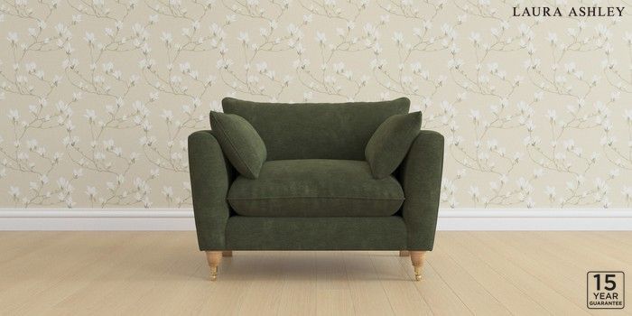 6.12.1 Buy Casterton by Laura Ashley Snuggle Alwyn Velvet Ivy Green Low Brass Castor - Light Oak from the Next UK online shop Click here to use our accessible website