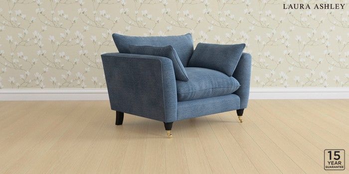 6.12.1 Buy Casterton by Laura Ashley Snuggle Edwin Chenille Seaspray Blue Low Brass Castor - Black from the Next UK online shop Click here to use our accessible website