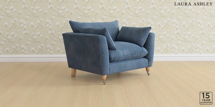 6.12.1 Buy Casterton by Laura Ashley Snuggle Edwin Chenille Seaspray Blue Low Chrome Castor - Light Oak from the Next UK online shop Click here to use our accessible website