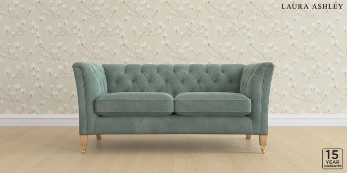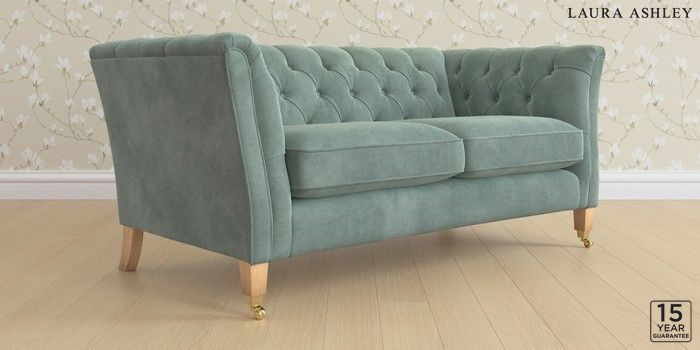 6.12.13 Buy Chatsworth Button Back by Laura Ashley 2 Seater Sofa Ailsworth Fern Green Straight Brass Castor - Light Oak from the Next UK online shop Click here to use our accessible website