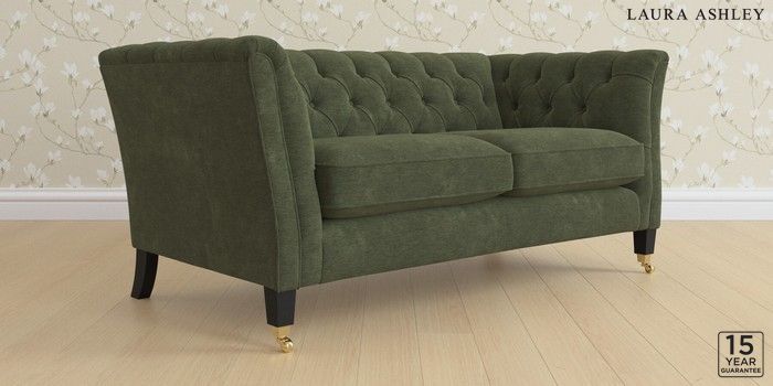 6.12.1 Buy Chatsworth Button Back by Laura Ashley 2 Seater Sofa Alwyn Velvet Ivy Green Straight Brass Castor - Black from the Next UK online shop Click here to use our accessible website