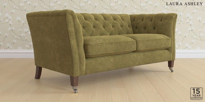 6.12.13 Buy Chatsworth Button Back by Laura Ashley 2 Seater Sofa Alwyn Velvet Olive Green Straight Chrome Castor - Chestnut from the Next UK online shop Click here to use our accessible website
