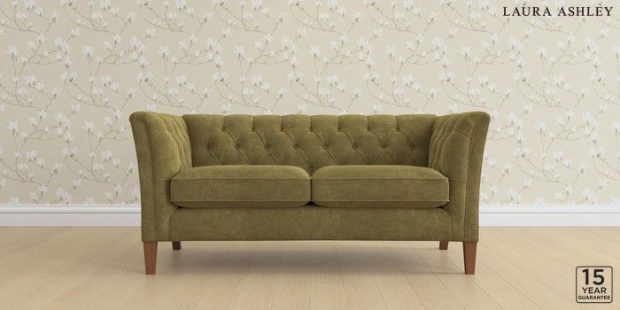 6.12.1 Buy Chatsworth Button Back by Laura Ashley 2 Seater Sofa Alwyn Velvet Olive Green Straight Mid - Teak from the Next UK online shop Click here to use our accessible website