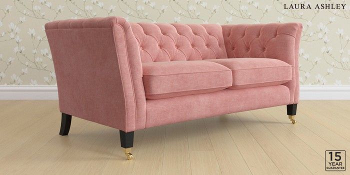 6.12.13 Buy Chatsworth Button Back by Laura Ashley 2 Seater Sofa Bainton Old Rose Pink Straight Brass Castor - Black from the Next UK online shop Click here to use our accessible website