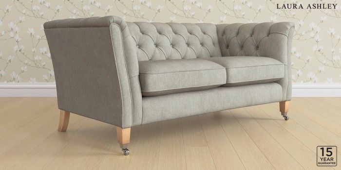6.12.1 Buy Chatsworth Button Back by Laura Ashley 2 Seater Sofa Bainton Pale Steel Grey Straight Chrome Castor - Light Oak from the Next UK online shop Click here to use our accessible website