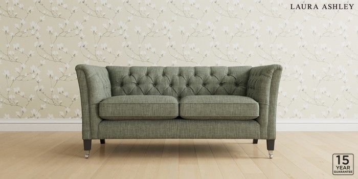 6.12.13 Buy Chatsworth Button Back by Laura Ashley 2 Seater Sofa Bainton Sage Green Straight Chrome Castor - Black from the Next UK online shop Click here to use our accessible website