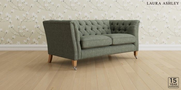 6.12.13 Buy Chatsworth Button Back by Laura Ashley 2 Seater Sofa Bainton Sage Green Straight Chrome Castor - Light Oak from the Next UK online shop Click here to use our accessible website
