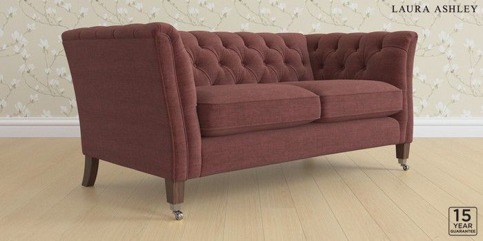 6.12.13 Buy Chatsworth Button Back by Laura Ashley 2 Seater Sofa Edwin Chenille Burgundy Red Straight Chrome Castor - Chestnut from the Next UK online shop Click here to use our accessible website