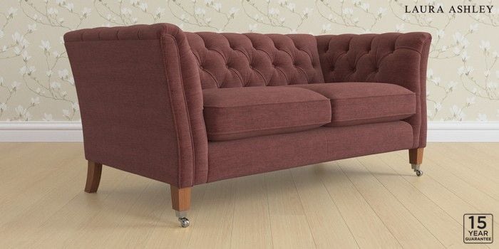 6.12.13 Buy Chatsworth Button Back by Laura Ashley 2 Seater Sofa Edwin Chenille Burgundy Red Straight Chrome Castor - Teak from the Next UK online shop Click here to use our accessible website