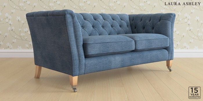 6.12.1 Buy Chatsworth Button Back by Laura Ashley 2 Seater Sofa Edwin Chenille Seaspray Blue Straight Chrome Castor - Light Oak from the Next UK online shop Click here to use our accessible website