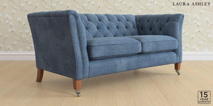 6.12.1 Buy Chatsworth Button Back by Laura Ashley 2 Seater Sofa Edwin Chenille Seaspray Blue Straight Chrome Castor - Teak from the Next UK online shop Click here to use our accessible website