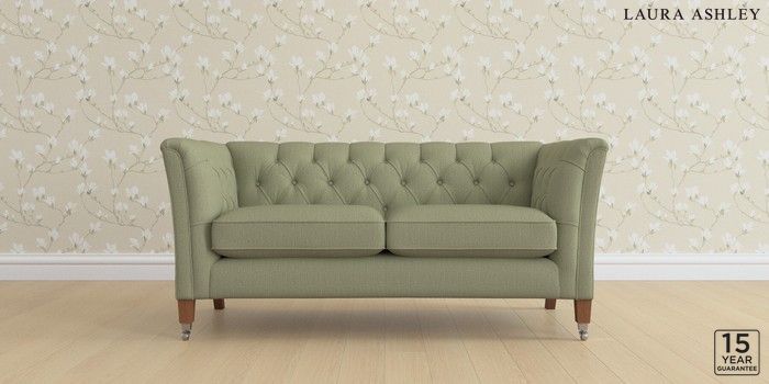 6.12.1 Buy Chatsworth Button Back by Laura Ashley 2 Seater Sofa Edwin Herringbone Hedgerow Green Straight Chrome Castor - Teak from the Next UK online shop Click here to use our accessible website