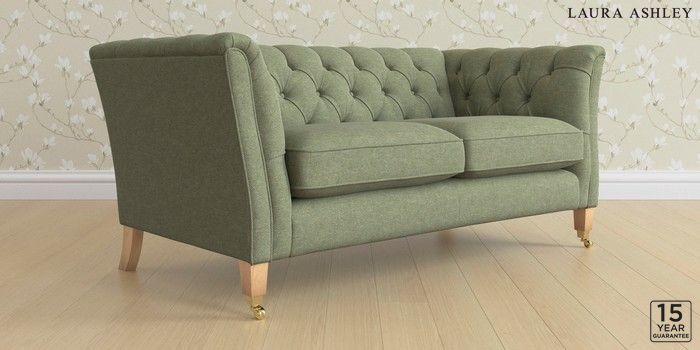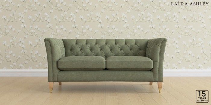 6.12.13 Buy Chatsworth Button Back by Laura Ashley 2 Seater Sofa Harley Moss Green Straight Brass Castor - Light Oak from the Next UK online shop Click here to use our accessible website