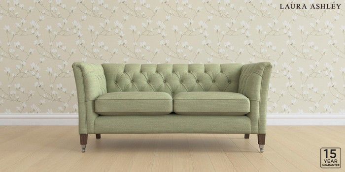6.12.13 Buy Chatsworth Button Back by Laura Ashley 2 Seater Sofa Kinsham Hedgerow Green Straight Chrome Castor - Chestnut from the Next UK online shop Click here to use our accessible website