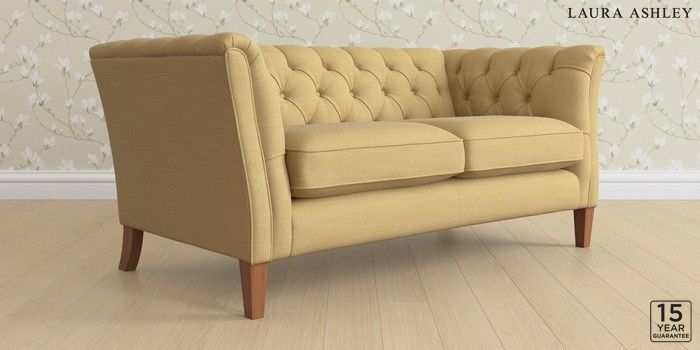 6.12.1 Buy Chatsworth Button Back by Laura Ashley 2 Seater Sofa Kinsham Ochre Yellow Straight Mid - Teak from the Next UK online shop Click here to use our accessible website