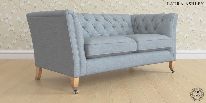 6.12.1 Buy Chatsworth Button Back by Laura Ashley 2 Seater Sofa Kinsham Seaspray Blue Straight Chrome Castor - Light Oak from the Next UK online shop Click here to use our accessible website