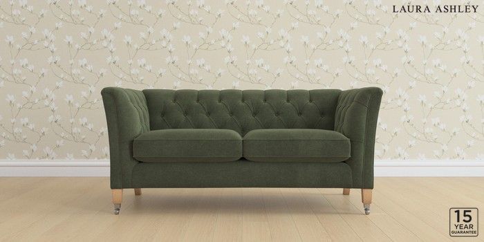 6.12.13 Buy Chatsworth Button Back by Laura Ashley 2 Seater Sofa Lundar Chenille Ivy Green Straight Chrome Castor - Light Oak from the Next UK online shop Click here to use our accessible website