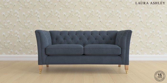 6.12.1 Buy Chatsworth Button Back by Laura Ashley 2 Seater Sofa Lundar Chenille Navy Blue Straight Brass Castor - Light Oak from the Next UK online shop Click here to use our accessible website