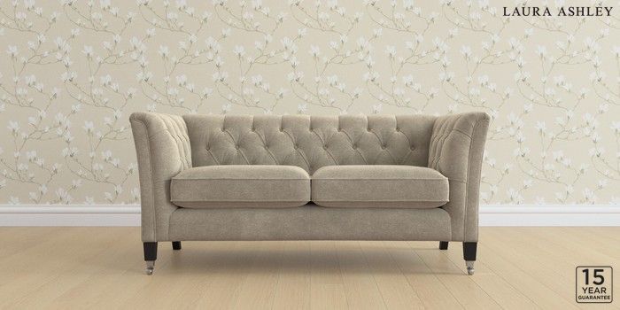 6.12.13 Buy Chatsworth Button Back by Laura Ashley 2 Seater Sofa Lundar Chenille Truffle Natural Straight Chrome Castor - Black from the Next UK online shop Click here to use our accessible website