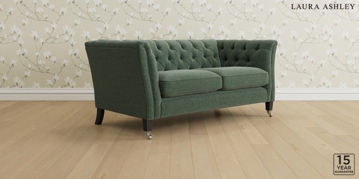 6.12.13 Buy Chatsworth Button Back by Laura Ashley 2 Seater Sofa Nantmor Fern Green Straight Chrome Castor - Black from the Next UK online shop Click here to use our accessible website