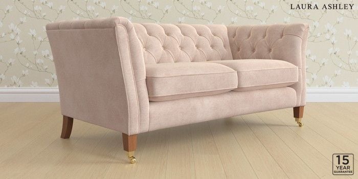 6.12.1 Buy Chatsworth Button Back by Laura Ashley 2 Seater Sofa Orla Chalk Pink Straight Brass Castor - Teak from the Next UK online shop Click here to use our accessible website