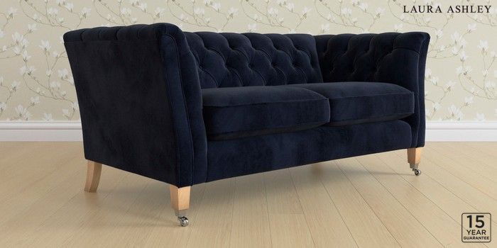 6.12.13 Buy Chatsworth Button Back by Laura Ashley 2 Seater Sofa Orla Midnight Navy Straight Chrome Castor - Light Oak from the Next UK online shop Click here to use our accessible website