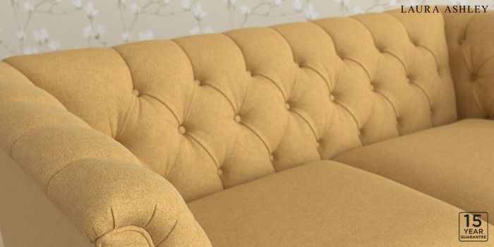 6.12.13 Buy Chatsworth Button Back by Laura Ashley 2 Seater Sofa Peyton Ochre Yellow Straight Chrome Castor - Teak from the Next UK online shop Click here to use our accessible website