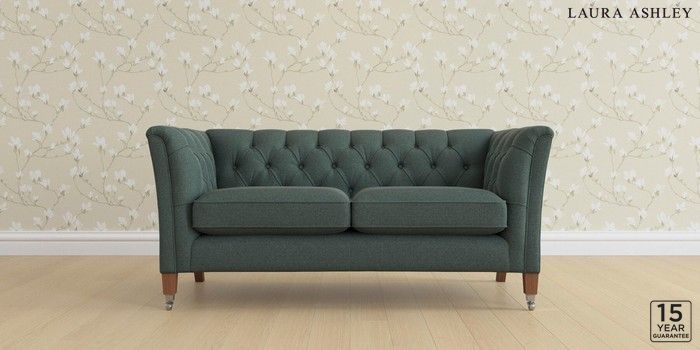 6.12.13 Buy Chatsworth Button Back by Laura Ashley 2 Seater Sofa Wooton Forest Green Straight Chrome Castor - Teak from the Next UK online shop Click here to use our accessible website