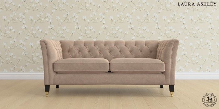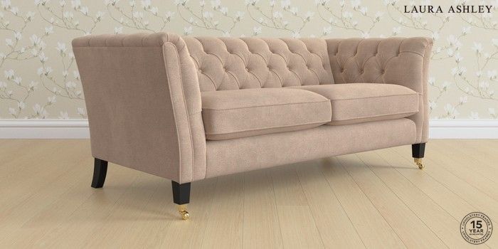 6.12.1 Buy Chatsworth Button Back by Laura Ashley 3 Seater Small Sofa Ailsworth Mink Natural Straight Brass Castor - Black from the Next UK online shop Click here to use our accessible website