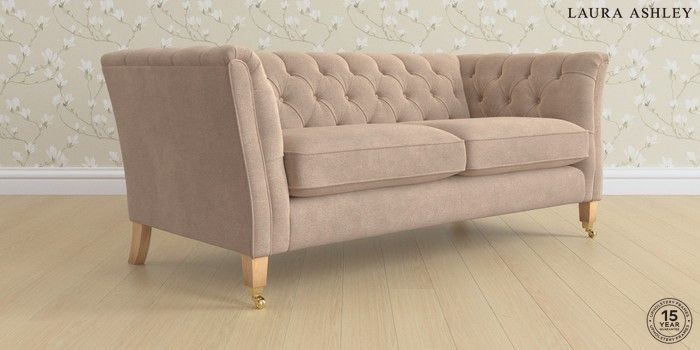 6.12.1 Buy Chatsworth Button Back by Laura Ashley 3 Seater Small Sofa Ailsworth Mink Natural Straight Brass Castor - Light Oak from the Next UK online shop Click here to use our accessible website