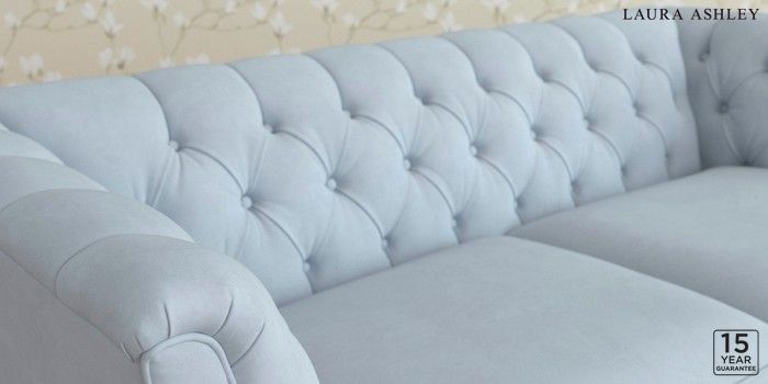 6.12.13 Buy Chatsworth Button Back by Laura Ashley 3 Seater Small Sofa Ailsworth Newport Blue Straight Chrome Castor - Black from the Next UK online shop Click here to use our accessible website
