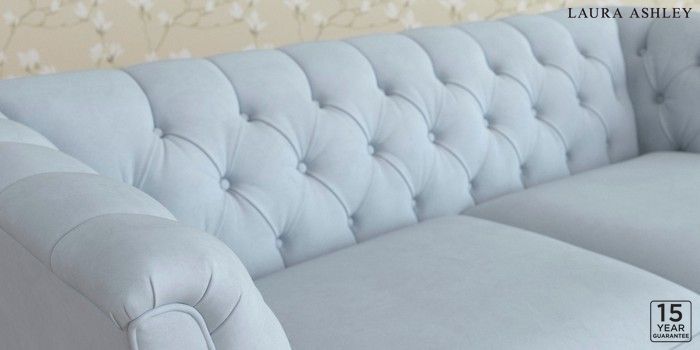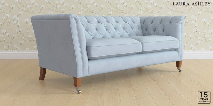 6.12.13 Buy Chatsworth Button Back by Laura Ashley 3 Seater Small Sofa Ailsworth Newport Blue Straight Chrome Castor - Teak from the Next UK online shop Click here to use our accessible website