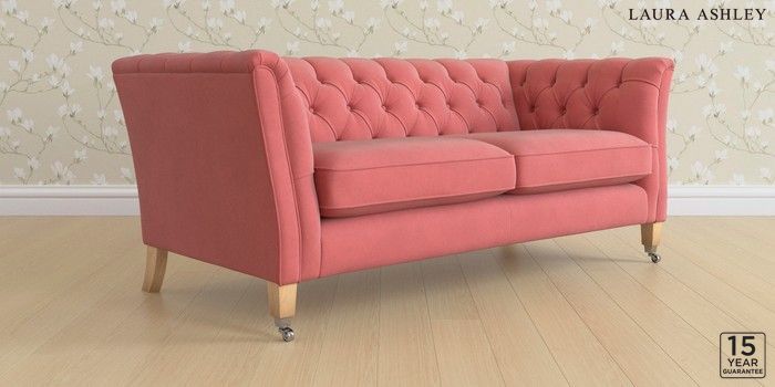 6.12.13 Buy Chatsworth Button Back by Laura Ashley 3 Seater Small Sofa Ailsworth Old Rose Pink Straight Chrome Castor - Light Oak from the Next UK online shop Click here to use our accessible website