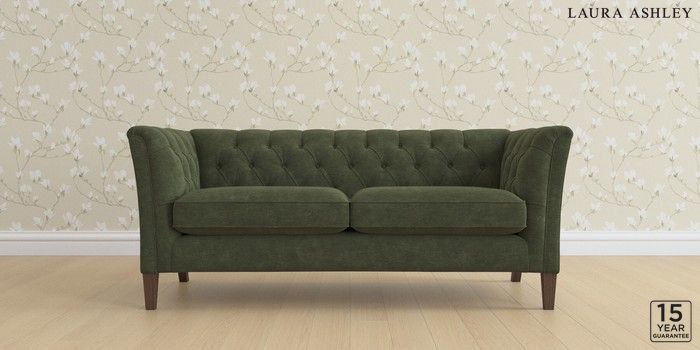 6.12.1 Buy Chatsworth Button Back by Laura Ashley 3 Seater Small Sofa Alwyn Velvet Ivy Green Straight Mid - Chestnut from the Next UK online shop Click here to use our accessible website