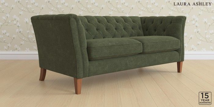 6.12.13 Buy Chatsworth Button Back by Laura Ashley 3 Seater Small Sofa Alwyn Velvet Ivy Green Straight Mid - Teak from the Next UK online shop Click here to use our accessible website